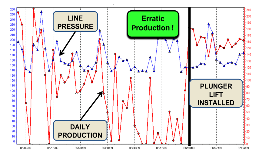 Fig 3. Erratic production indicates liquid loading